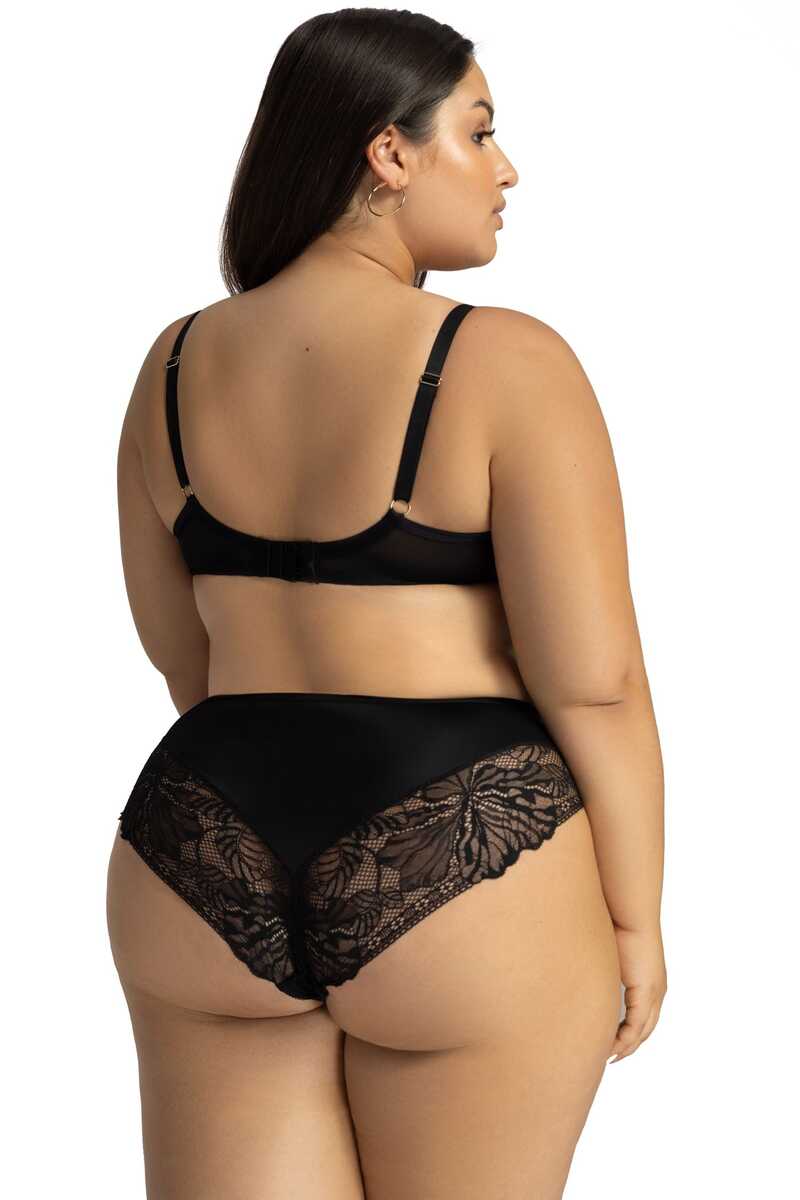 Dolna część miseczek jest lekko usztywniona cienką pianką, która subtelnie modeluje biust i zapewnia stabilność, natomiast górna część wykonana z elastycznego tiulu delikatnie dopasowuje się do kształtu piersi. Starannie opracowana konstrukcja pięknie zbiera biust do środka i nadaje mu krągły kształt.