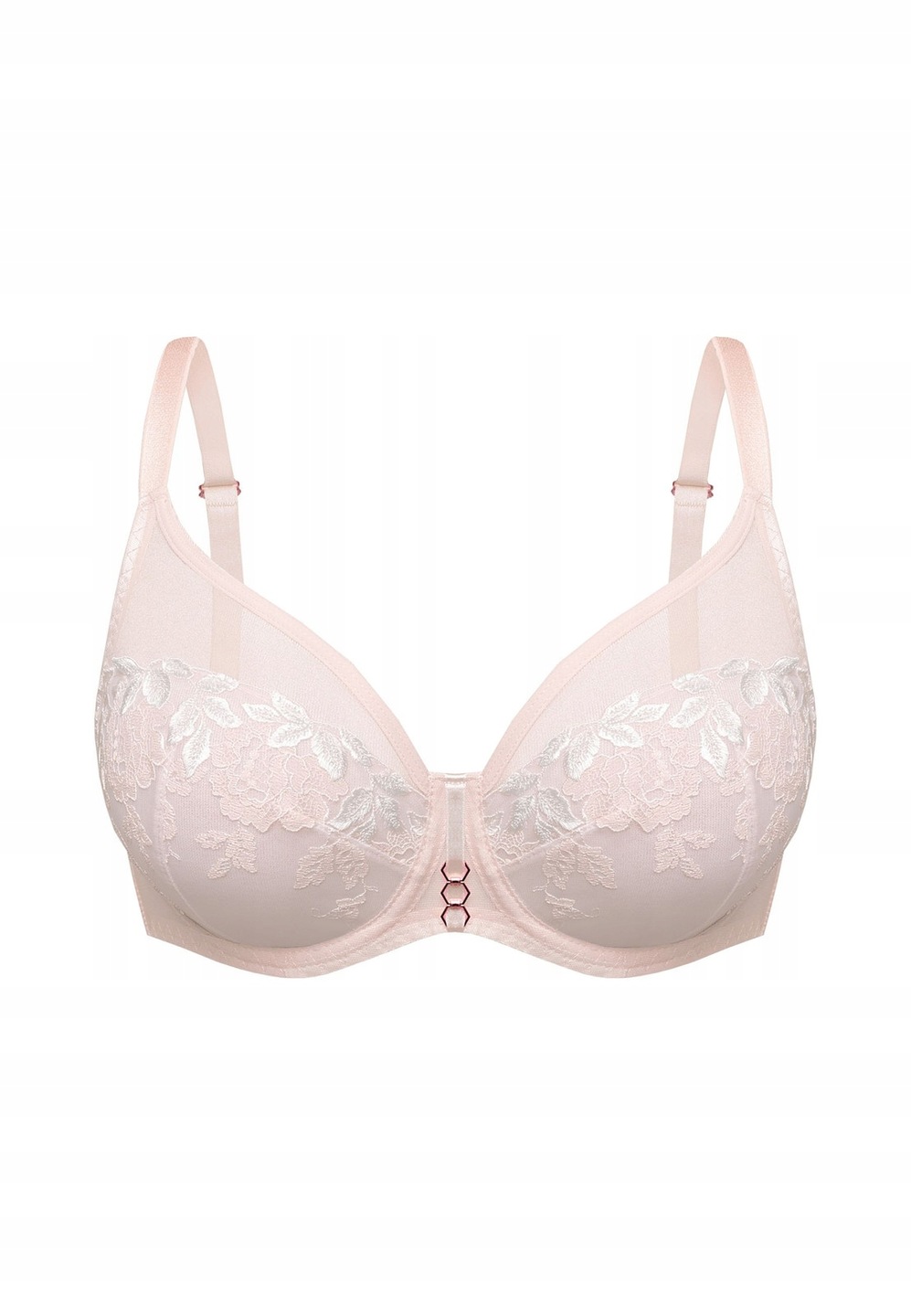 Biustonosz Albina to miękka propozycja typu soft dla kobiet ceniących wygodę, subtelny styl i eleganckie detale. Wykonany z transparentnego tiulu, ozdobiony delikatnym haftem o kwiatowym motywie, prezentuje się niezwykle kobieco. Konstrukcja z fiszbinami delikatnie modeluje biust, zapewniając mu naturalny kształt i odpowiednie podtrzymanie.