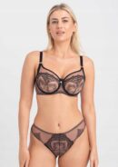 A143 to miękki biustonosz na fiszbinach, stworzony z myślą o średnim i dużym biuście. Delikatnie zbiera i efektownie unosi piersi, jednocześnie zapewniając stabilność i komfort. Miseczki wykonane zostały z haftowanego tiulu elastycznego, który daje efekt tatuażu na ciele – kuszący, a zarazem elegancki.