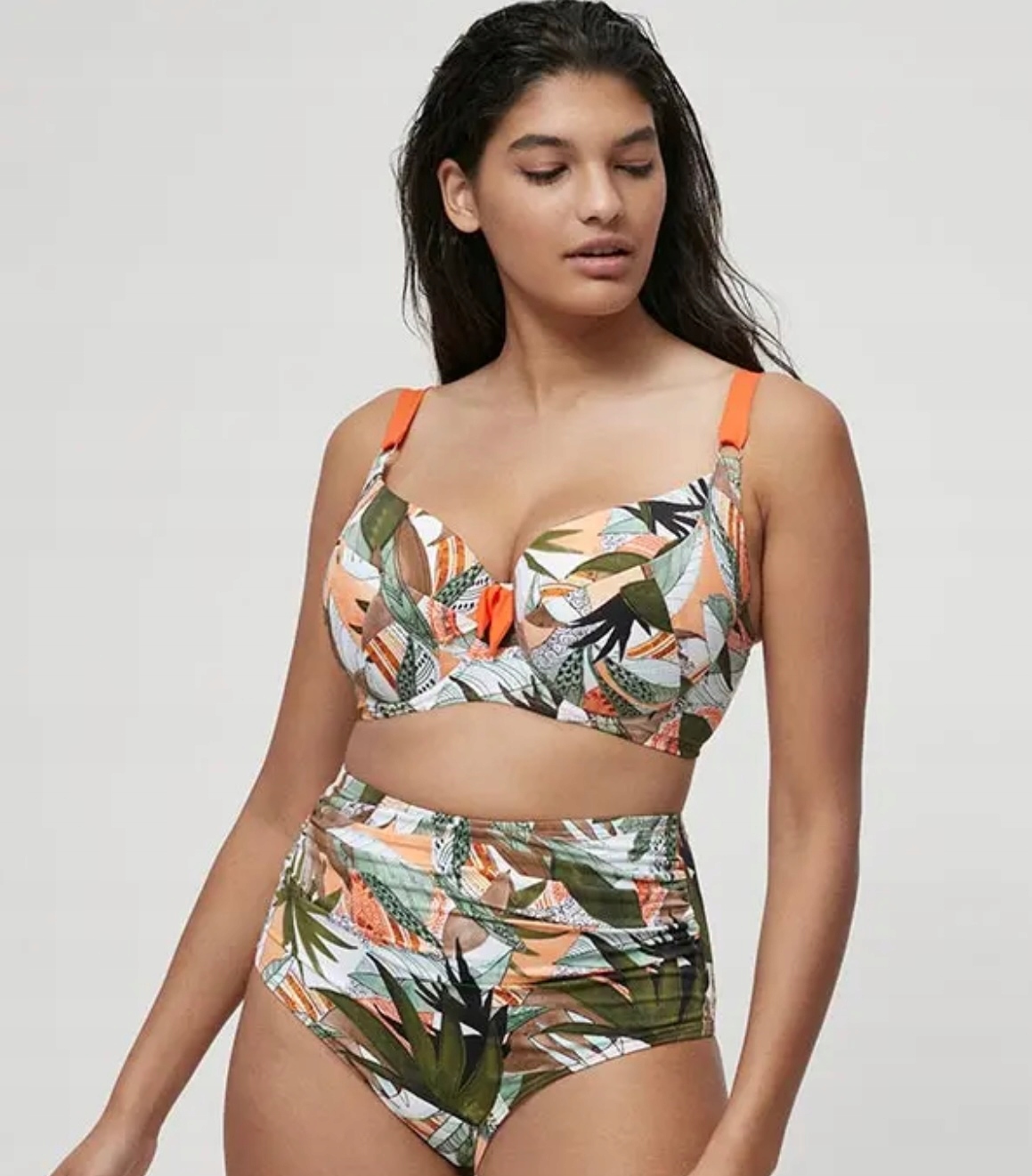Model AMBER z kolekcji Dalia Lingerie to najodważniejsza i zarazem najbardziej zmysłowa propozycja w tropikalnym stylu. Stonowana oliwka przełamana intensywnym pomarańczem tworzy nietuzinkową, wakacyjną kompozycję, która przyciąga spojrzenia i podkreśla opaleniznę.